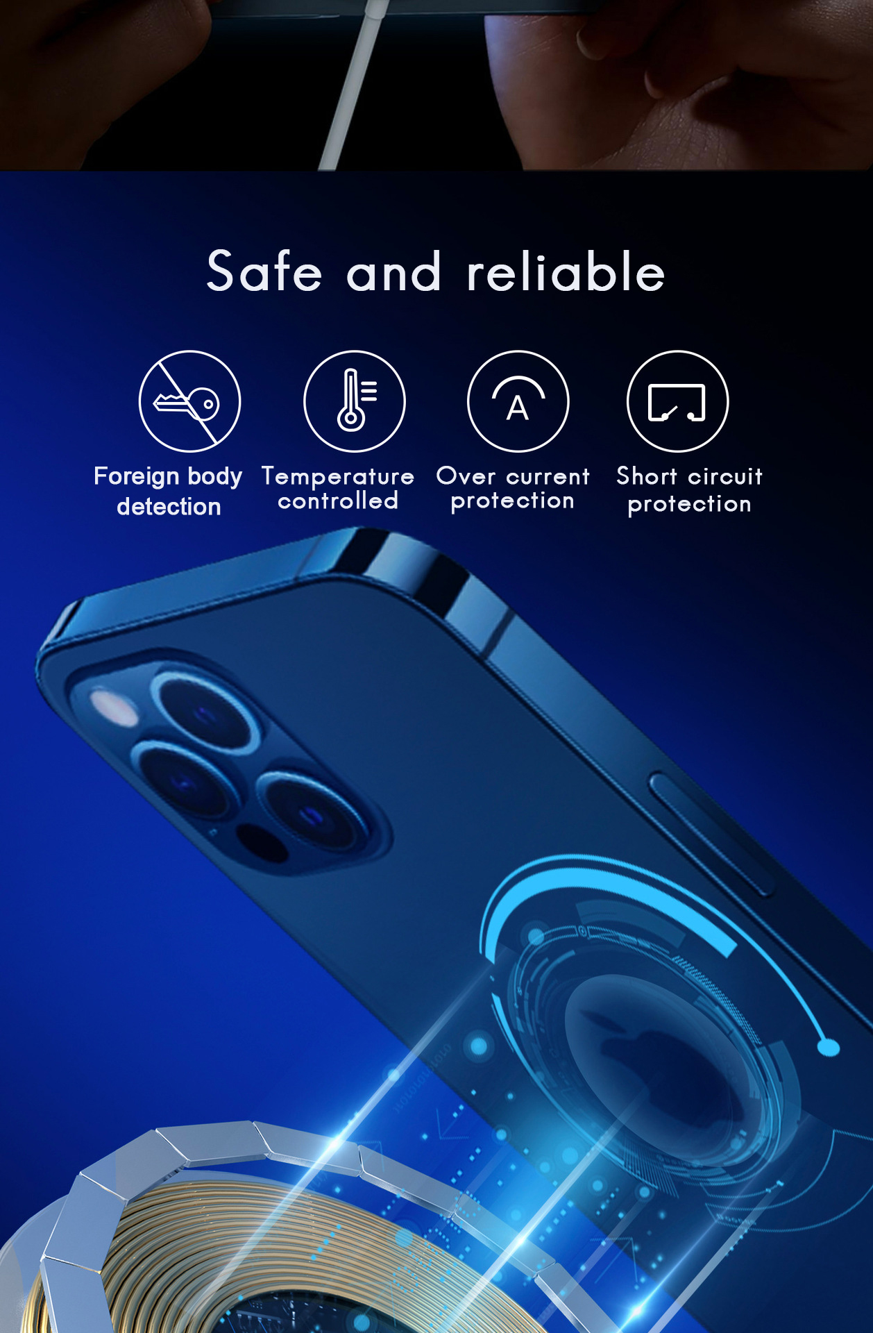Enaxm Technology Z12 wireless charger compatible with Apple / Huawei / Samsung / L mobile phone and other wireless charging equipment. It has magnetic strength adsorption function, stabilizing without slipping, charging only one hand. Compatible with all PD fast charge agreements, USB-C input port, charging speed is only 40 minutes, play games, fast charge is not hot, safe and reliable.